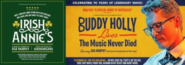 Irish Annie’s and Buddy Holly Lives – The Music Never Died are both co-produced by Bill Elms Productions (Judy & Liza, Jerry Springer the Opera, Swan Song, Something About Simon, Something About George) and Asa Murphy Productions (The Bobby Darin Story).